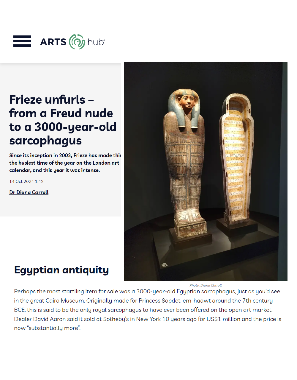 Frieze London 2024 'The Inner Sarcophagus of Princess Sopdet-em-haawt'